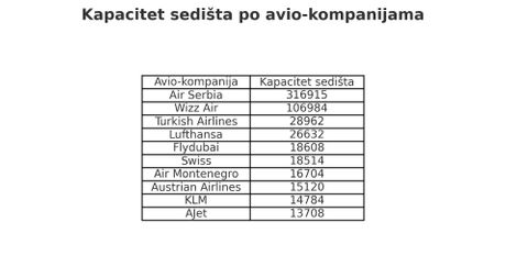 Er Srbija je i dalje vodeći prevoznik na beogradskom aerodromu sa kapacitetom od 316.915 sedišta u februaru, što čini gotovo dve trećine ukupnog kapaciteta. Niskotarifni prevoznik VizEr zauzima drugo mesto sa 106.984 sedišta, dok Turskiš erlajns, Lufthanza i Flajdubai takođe beleže značajan broj putnika.