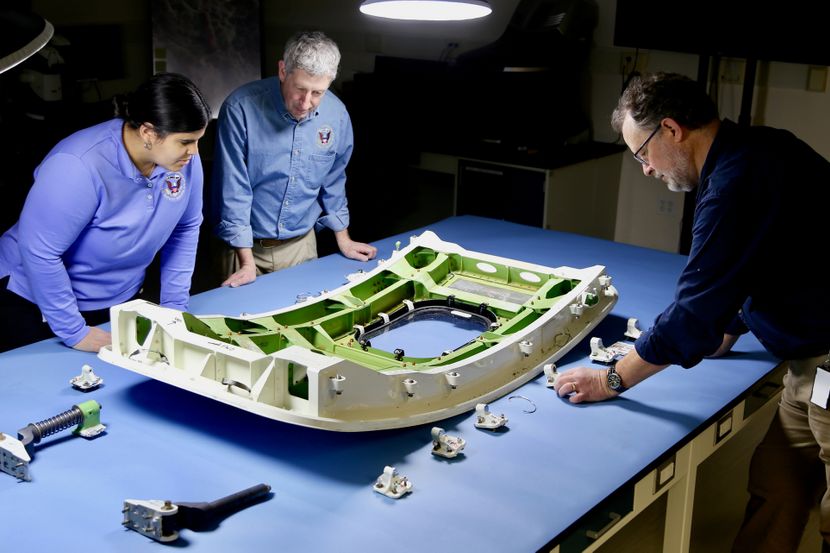 Prema NTSB-u, fotografija je snimljena pre unutrašnje restauracije i nakon što je popravka zakovica završena.