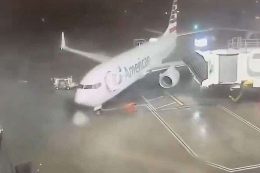Jaki udari vetra odgurnuli su parkirani avion American Airlinesa Boeing B737 na aerodromu Dallas-Fort Worth (DFW). Sve su zabeležile sigurnosne kamere na aerodromu.