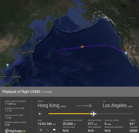 Podaci sa servisa za praćenje letova Flightradar24.com pokazuju da je Boeing 777-300ER poleto iz Hong Konga 1. januara 2025. godine u 00:38 po lokalnom vremenu (16:38 UTC) a sleteo u Los Anđeles 31. decembra 2024. godine u 20:19 (04:19 UTC). Let je trajao 11 časova i 42 minuta.