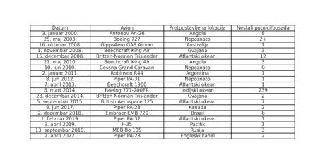 - Antonov An-26, koji je nestao u Angoli 2000. godine,
