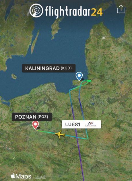 Avion Erbas A321-231 (reg. SU-TCM) egipatske avio-kompanije AlMasrija Univerzal Erlajns (AlMasria Universal Airlines), na letu UJ681 iz Šarm el Šeika (SSH) ka Kalinjingradu (KGD), bio je primoran da preusmeri let ka aerodromu Poznanj (POZ) u Poljskoj zbog loših vremenskih uslova. Međutim, nakon sletanja, avion nije dobio dozvolu za poletanje više od deset sati, a putnicima nije obezbeđena hrana, voda niti pristup toaletu, prenose ruski mediji.