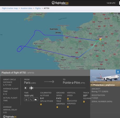 Avion je oko sat vremena kružio u vazduhu na visini od 31.000 stopa nedaleko od obale Francuske, pre nego što je posada donela odluku o povratku na aerodrom. Let AF750 bezbedno je sleteo na pistu 06 aerodroma Orli u 14:06 časova, nešto više od dva sata nakon poletanja.