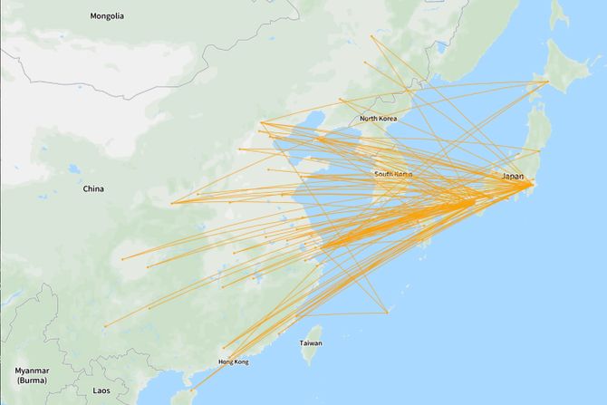 Vizuelne mape analitičkih servisa prikazuju gustu, višeslojnu mrežu koja povezuje desetine kineskih gradova sa Tokijom, Osakom, Sapporom i Nagojom. Taj prikaz jasno pokazuje koliki je značaj ove avio-veze za regionalni saobraćaj. Sada, kada je veliki deo kapaciteta povučen, mreža izgleda znatno razređeno, sa posledicama koje će se meriti u prihodima, opterećenju slotova i planiranju posada tokom celog zimskog reda letenja i prve polovine naredne godine.