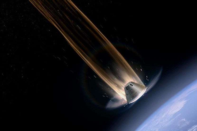 Kako se spušta kroz gušće slojeve atmosfere, kapsula koristi svoj specifičan oblik da generiše aerodinamički uzgon. Na taj način ne “pada” pravolinijski, već kontrolisano menja ugao i pravac, čime se smanjuju opterećenja na posadu i preciznije određuje zona sletanja. Ugao ulaska od oko 5,8 stepeni ima presudan značaj za bezbedan povratak: ukoliko je previše mali, kapsula može “odskočiti” od gornjih slojeva atmosfere i vratiti se u svemir, dok bi prestrm ulazak doveo do ekstremnog zagrevanja i opterećenja koja bi mogla da ugroze let. U ovoj fazi dostižu se i maksimalne temperature na toplotnom štitu, koje mogu prelaziti 2.700 stepeni Celzijusa, dok posada trpi opterećenja od oko četiri do pet G.