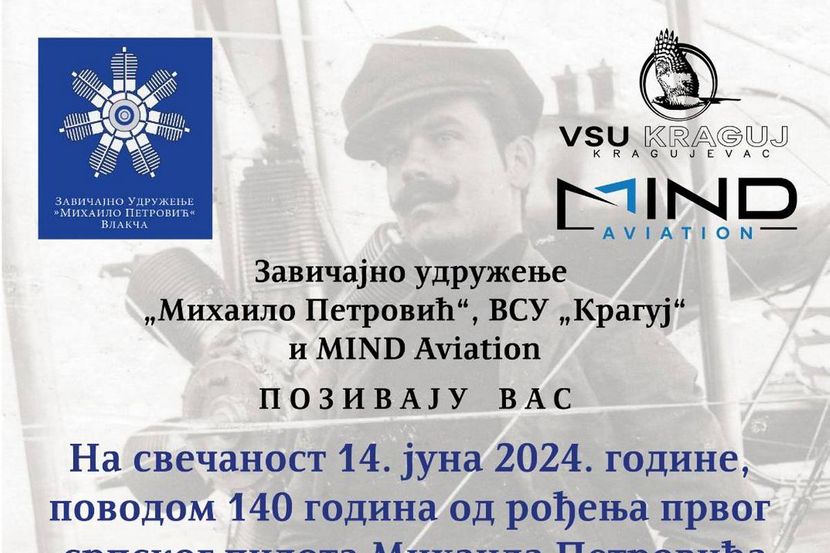 Ovim memorijalom obeležiće se i 140 godina od rođenja prvog srpskog pilota, ali i prvog pilota koji je poginuo u obavljanju svog zadatka - Mihaila Petrovića, koji je rođen u selu Vlakča kraj Kragujevca, 14. juna 1884. godine.