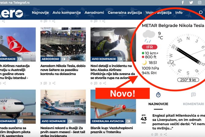 Od sada, na našem portalu Aero.rs vam je dostupan widget "METAR and TAF" za praćenje vremenskih prilika na aerodromima širom sveta.