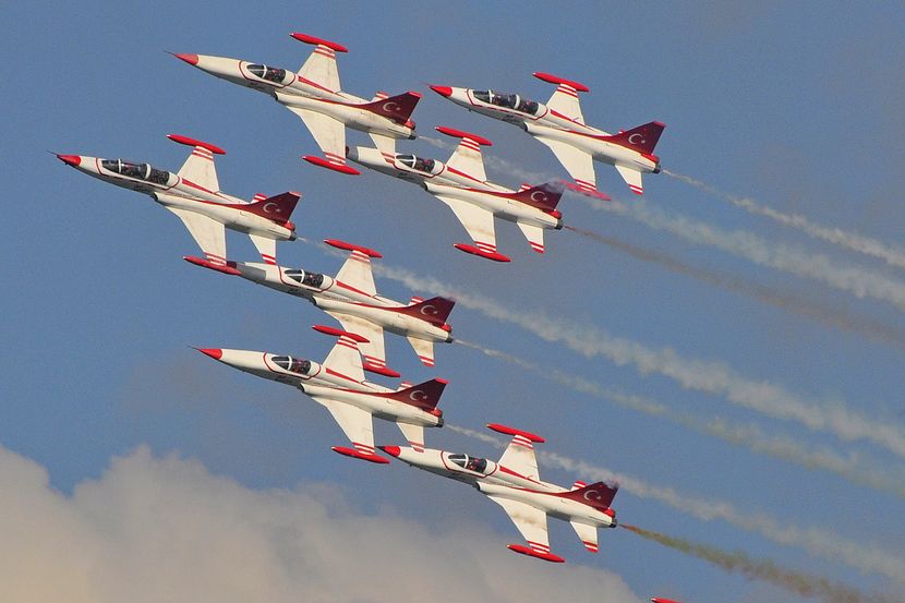 Ako ste bili na nekom od aero-mitinga na kom su nastupale Turske zvezde, znate da se radi o jednoj od najcenjenijih akro-grupa na svetu koja nastupa sa osam aviona u različitim formacijima. Dodatni avioni su na raspolaganju ako neki otkaže iz tehničkih razloga. Godišnje “uknjiže” između 20 i 30 nastupa na mitinzima širom sveta.