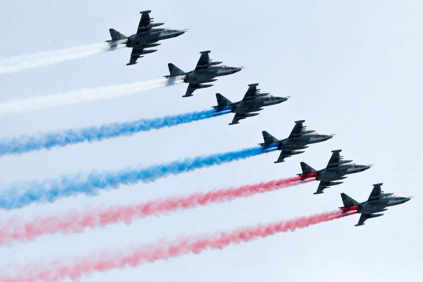 Potom su centar glavnog grada Ruske Federacije preleteli jurišnici Su-25 koji su za sobom ostavljali trag u bojama ruske zastave. Avioni su leteli na visini do 500 metara, brzinom od 550 km/h, prenosi agencija TASS.