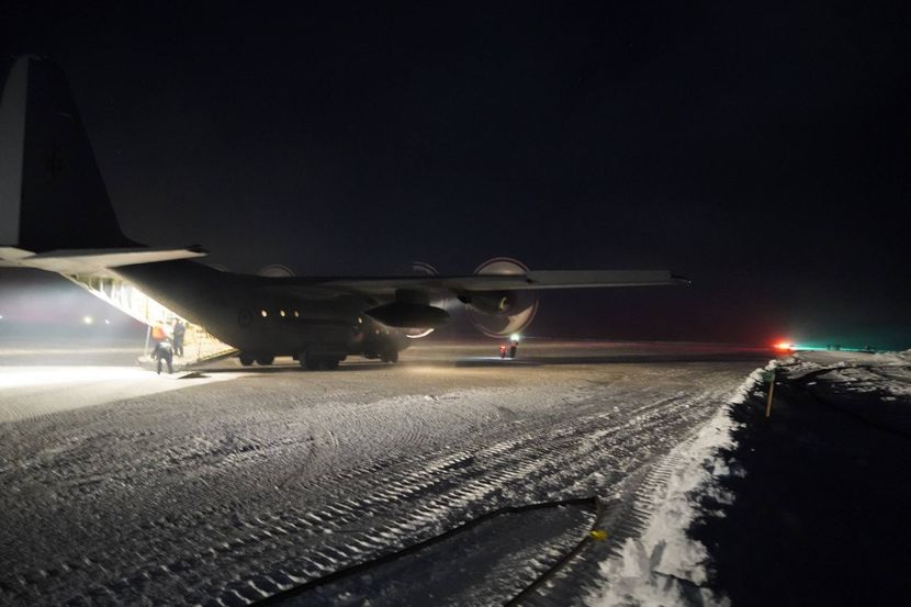 C-130 Hercules uspeo je bezbedno da sleti na letelište Feniks uprkos izazovnih uslovima. U saopštenju kraljevskog ratnog vazduhoplovstva navodi se je misija izvedena po mraku, kao i da se temperatura kretala u rasponu od -33 do -40 stepeni celzijusa.
